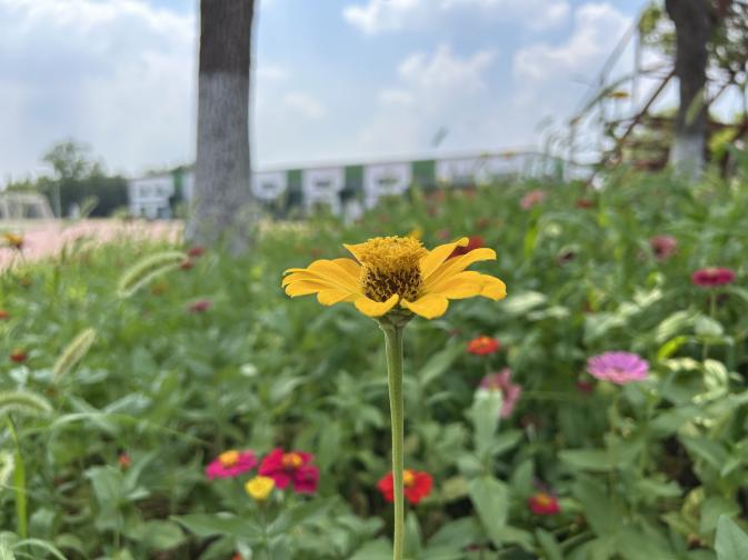 开营现场,巨大的横幅高高悬挂,“美狮贵宾会科技暑期集训营” 几个大字格外醒目,校园里盛开的花儿将整个校园装点得充满活力。