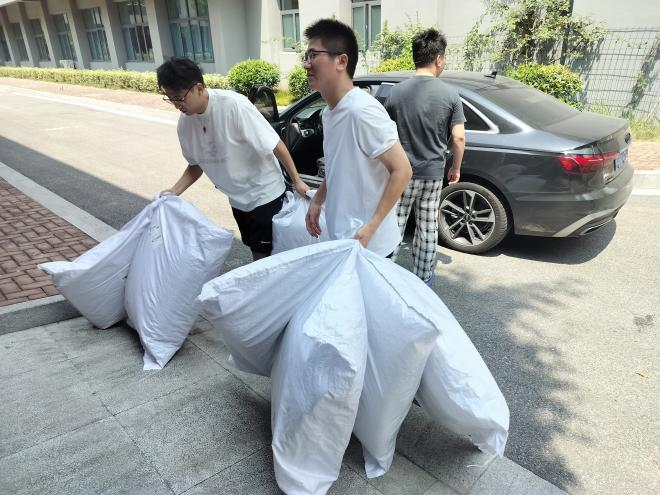 在入住过程中,难免会遇到一些小问题。针对有的同学对宿舍各类功能使用不太熟悉。工作人员们得知情况后,迅速响应,第一时间联系维修人员解决问题,同时亲自上手帮助同学们整理内务。此外,为了让同学们更好地适应暑期集训生活,工作人员还贴心地分发了各类防暑降温的饮料水果,让同学们对接下来的生活学习更有信心。